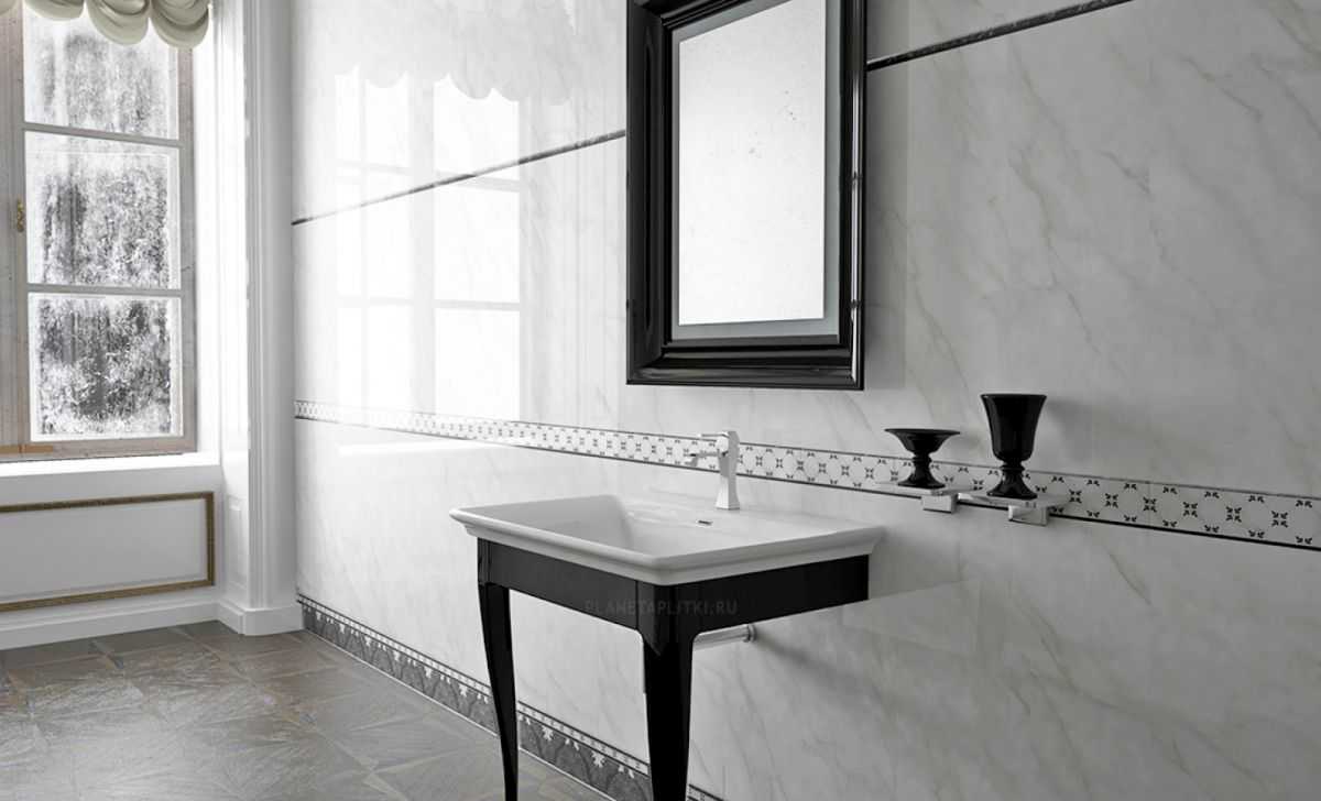 Отполированная до зеркального блеска плитка отлично отражает свет и визуально увеличивает пространство.