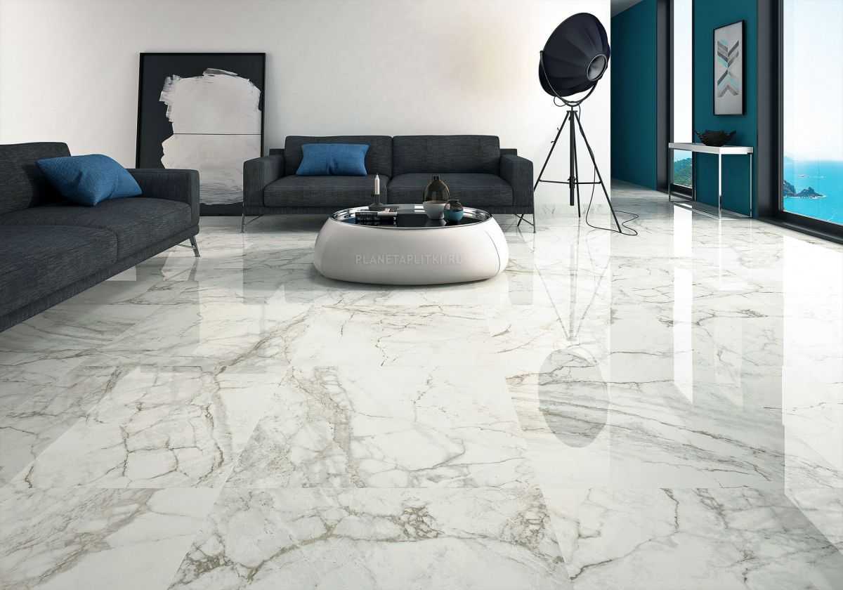 Особенно эффектен керамогранит для пола, белый глянец которого отлично впишется не только в современные стили техно, хай-тек, но и в ренессанс или классику. Он будет отличным решением для пола в гостиной, особенно, учитывая его практичность и простоту уборки. Правильным сочетанием со стенами и мебелью от керамогранита можно добиться шикарного дорогого вида.