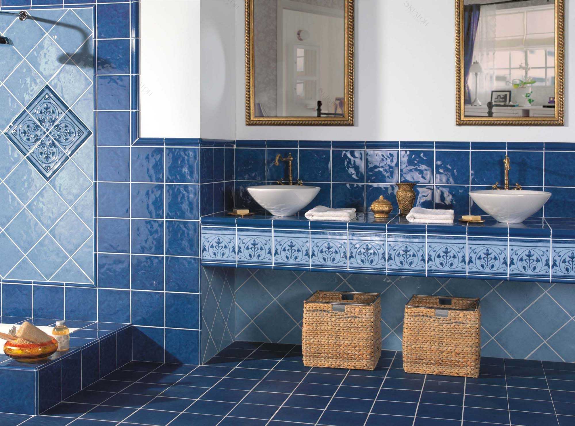 Голубые и зеленоватые тона чаще используют в ванных комнатах. Уместно они будут смотреться и в гостиной, прихожей, на кухне. Их не стоит сочетать с яркими красными или оранжевыми контрастами, однако можно комбинировать такую плитку с аналогом бежевого цвета, который является мягким контрастом.