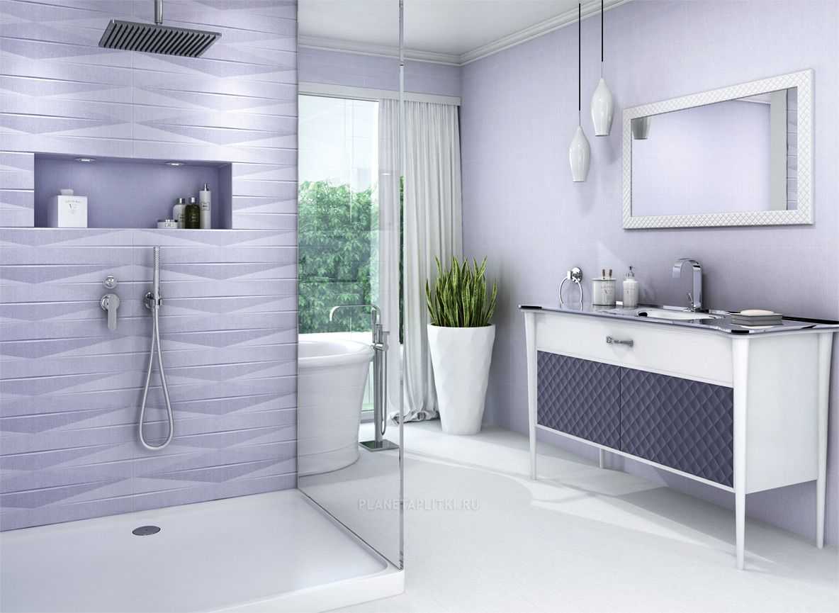 Использовать и шероховатую, и блестящую плитку можно для стен, пола и потолка. Если для напольного покрытия выбирается глянец, нужно помнить о безопасности и постелить ПВХ или прорезиненные коврики около ванны или душевой кабинки.