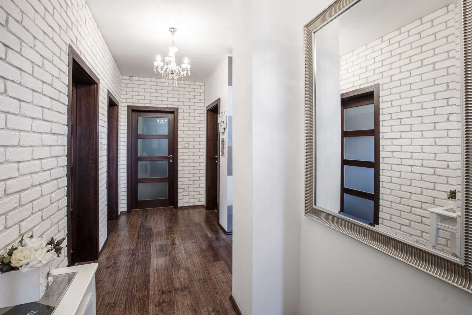 Некоторые дизайнеры и вовсе идут на рискованный шаг, используя в отделке стен под кирпич зеркальную плитку с фацетом.