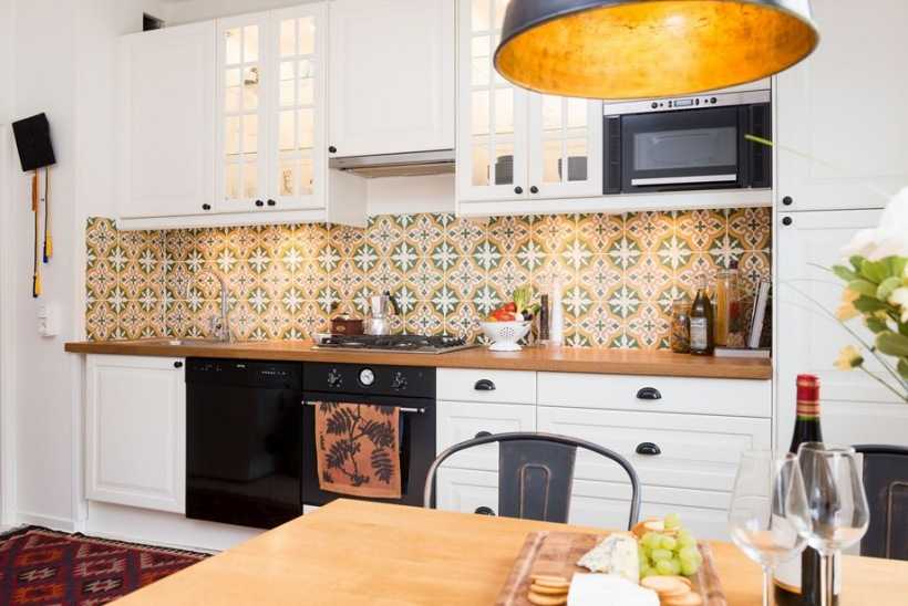 Такая отделка хорошо смотрится и в современной, и в классической кухне. К тому же она визуально расширяет пространство.