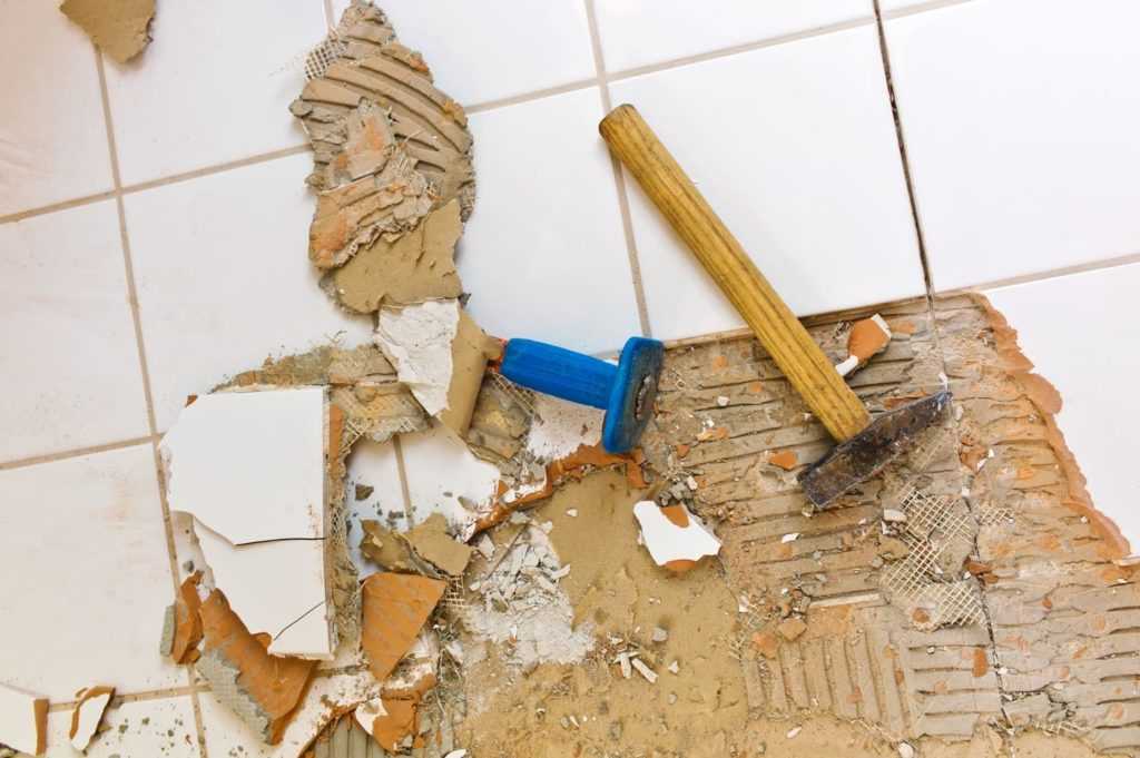 Если пустот не обнаружено, резаком нужно разрезать кафельную плитку по диагонали, завершив дальнейший демонтаж молотком и зубилом.