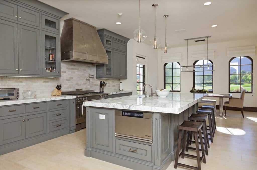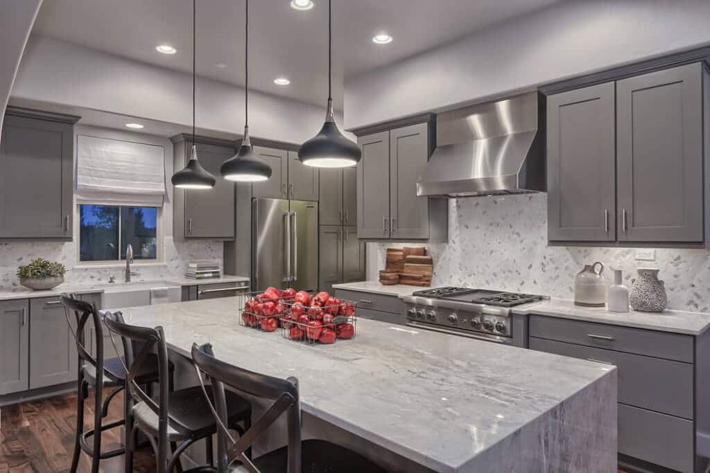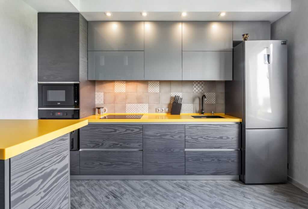 Благодаря серому интерьер выглядит изысканно и благородно. Советуем вам оформить в этом цвете кухню, если вы страдаете от переедания и тяжести в желудке.