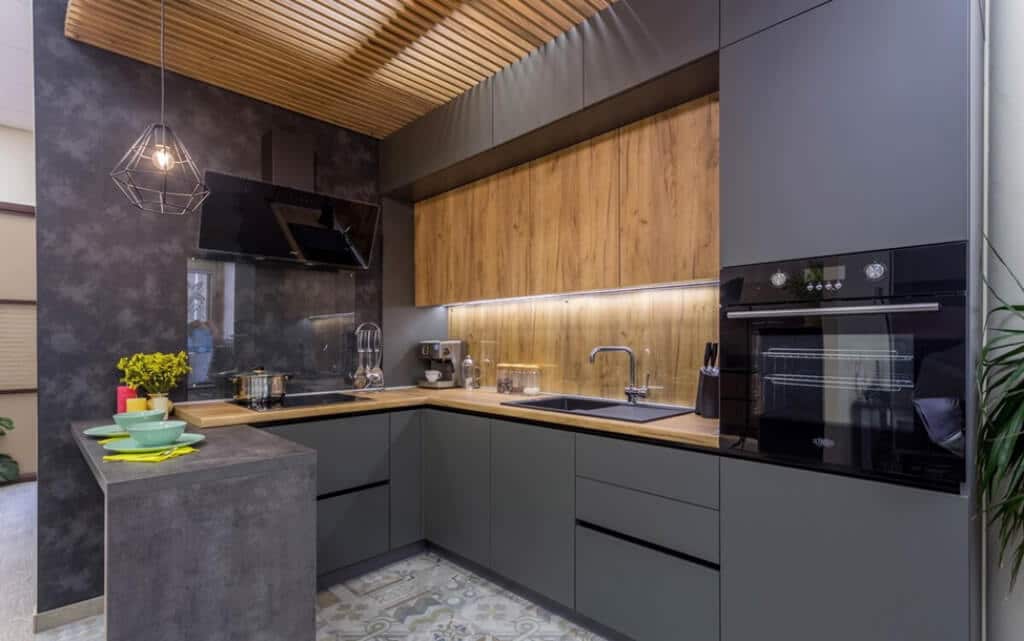 Стильная кухня интерьер которой выполнен преимущественно в холодных оттенках