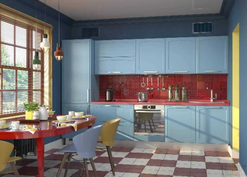 Сочетание синего с желтым яркое, смелое и экстравагантное, но оно хорошо подойдет для детских, кухонь или ванных комнат. Сочные цвета ассоциируются с ярким солнцем на фоне чистого неба, поэтому сразу же бодрят и поднимают настроение. Это хороший выбор для помещений, где постоянно не хватает естественного света за окном.