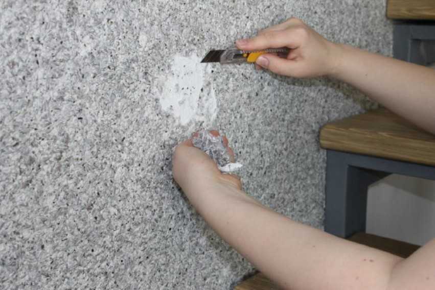 - углом шпателя, ножом или другим инструментом сделать на полотнищах надрезы по всей площади;