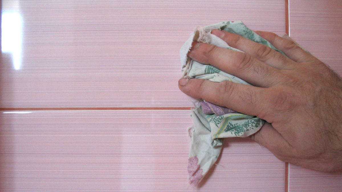 - Спустя 15-20 минут кафель сразу можно протереть влажной мягкой ветошью. Так намного проще смыть следы состава, нежели после полного его высыхания;