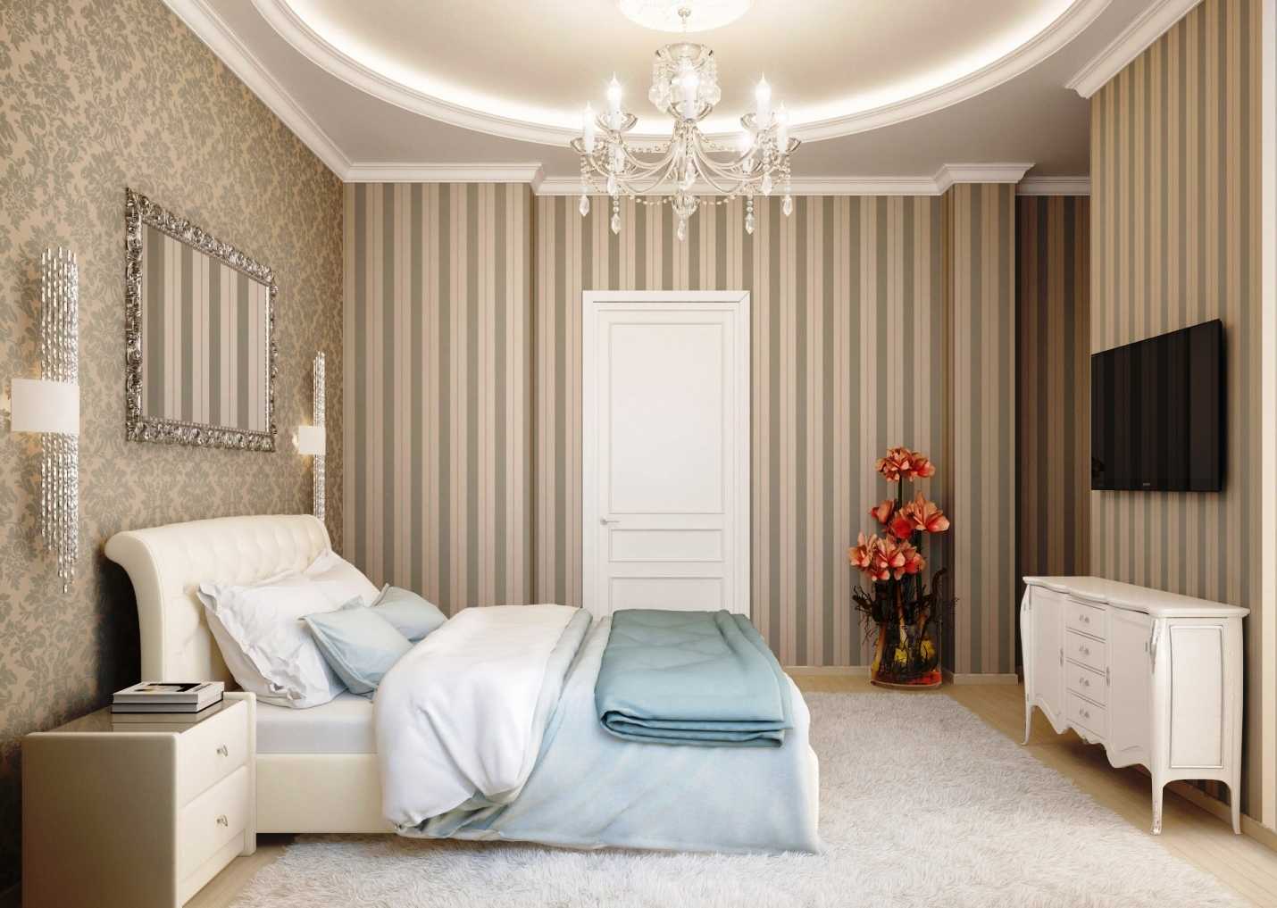 - Какими элементами и предметами интерьера в спальне дополнить комбинацию обоев.