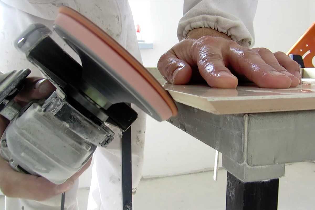 Шлифовка среза кафельной плитки под углом 45 градусов.