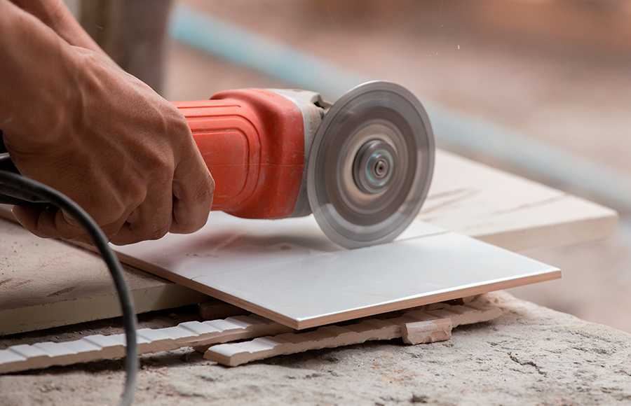 Болгаркой можно разрезать кафельную плитку на определенные кусочки.