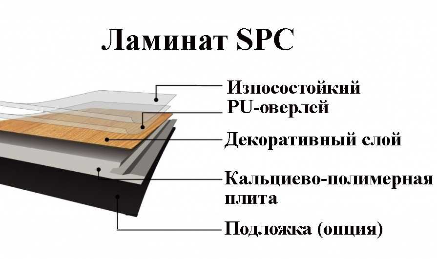Классическое ламинированное покрытие – многослойное. Состоит из основы (HDF-плиты), бумаги с декором и защитного износостойкого слоя. Напольный материал довольно популярен в немалой мере благодаря удачной замковой системе соединения. Но потребителей часто отпугивало отсутствие такого свойства, как водостойкость. Поэтому была разработана принципиально новая линейка отделочных материалов, которая получила название Stone polymer composite или SPC (SPS). В буквальном переводе – каменно-полимерный композит. Ламинат этой серии состоит из: