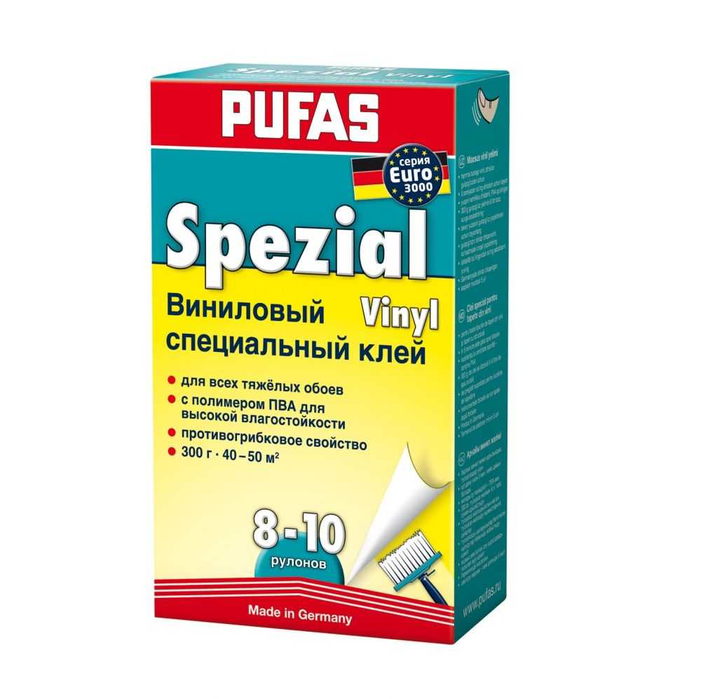 6. Относительно недорогим клеем является продукт PUFAS. Необходимо отметить, что под этим брендом распространяется большое количество разновидностей флизелинового клея — существуют даже те изделия, которые предназначены для заливки в обойно-смазочную машину. Также практически все виды клея отличаются невысокой ценой.