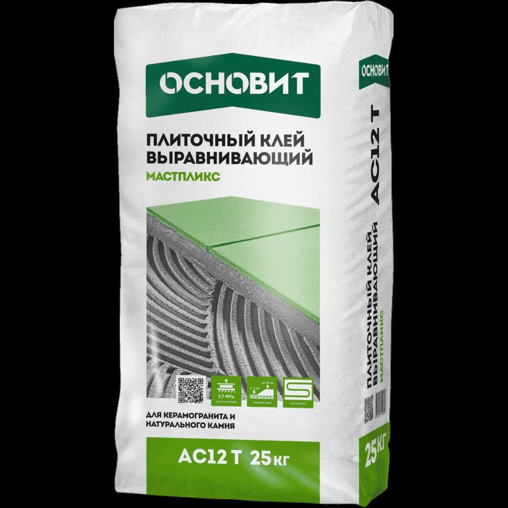 - Основит «Мастпликс ECO» AC12. Состав, не образующий пыли. Применяется, как клей для плитки на пол и стены. Используется также для отделки балконов и террас.
