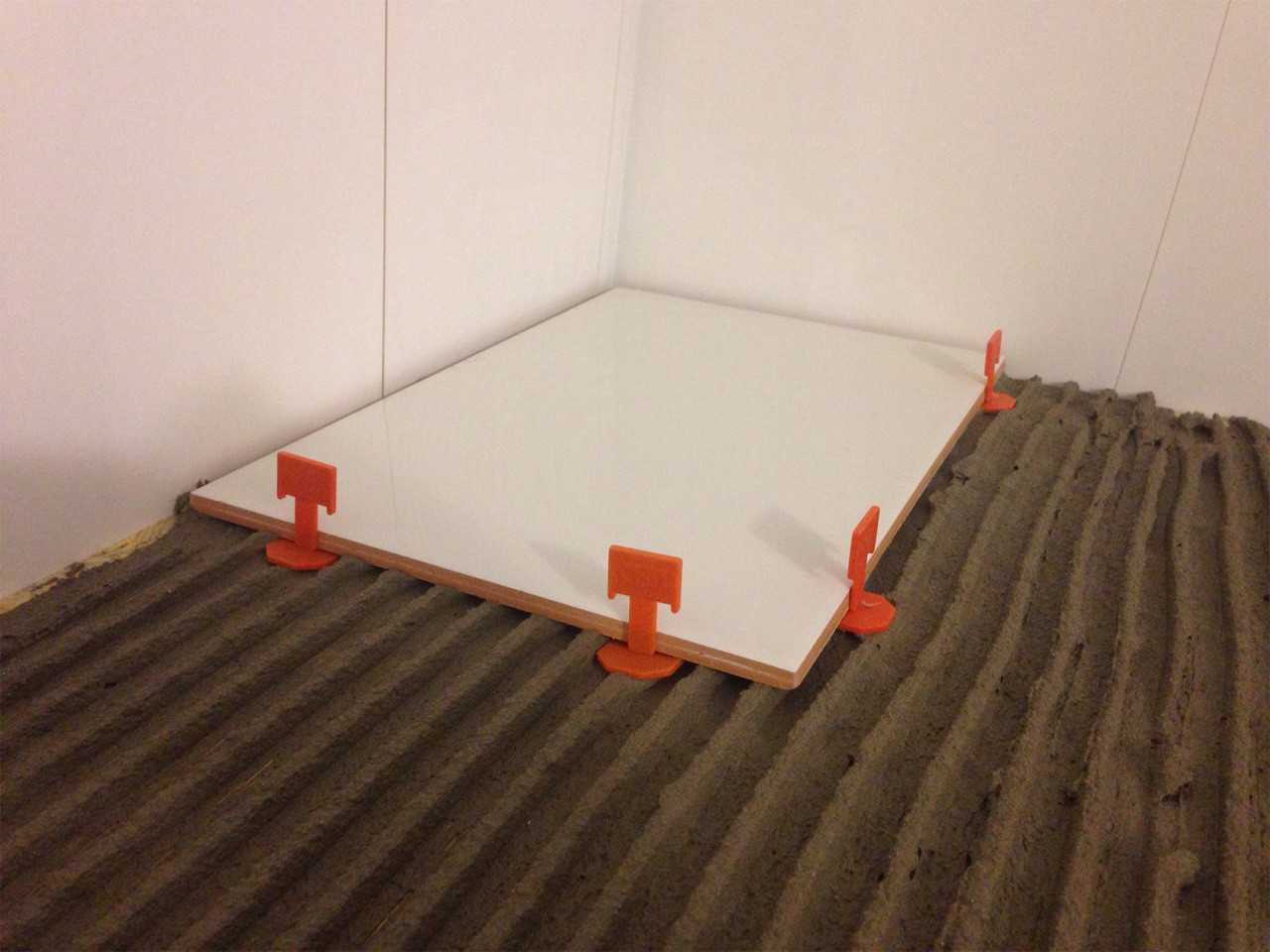 Основное отличие отечественной системы нивелирования кафельной плитки в том, что она состоит из двух простых частей: нижняя часть подкладывается под плитку и является одноразовой, а верхняя часть представляет собой клин или шайбу, которая может использоваться повторно. При её использовании нет необходимости в каких-либо дополнительных инструментах и приспособлениях. Вся работа легко производится как профессиональными плиточниками, так и неподготовленным человеком без особых навыков.