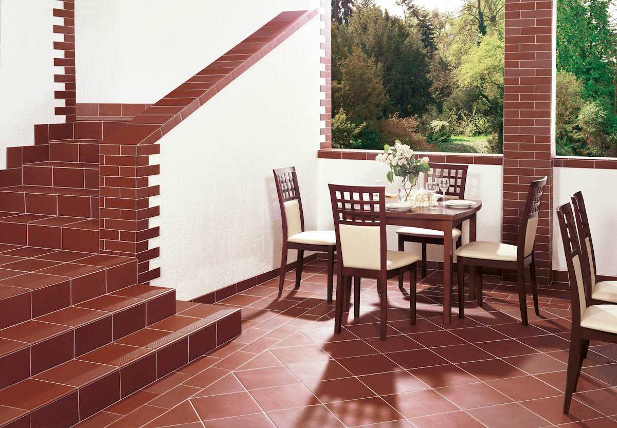 Клинкер походит для установки не только внутри помещений, но и на улице, к примеру, для оформления ступеней. Компании выпускают целые коллекции для облицовки фронтальных ступеней, подступенок, угловых лестниц.