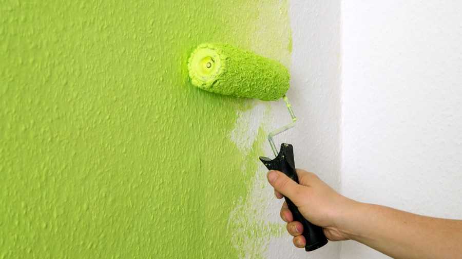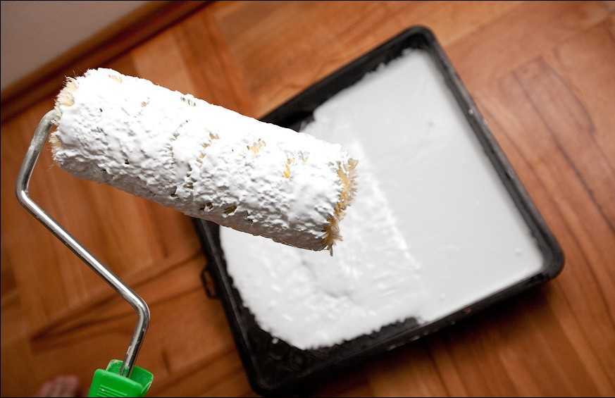 Если делать перерывы в работе, то будут заметны стыки, поэтому стену нужно красить сразу всю. Валик не должен быть сделан из поролона, так как после него образуются пузырьки с воздухом, которые при высыхании лопаются. Если возникают потеки, то их следует сразу устранять, пока не высохли.