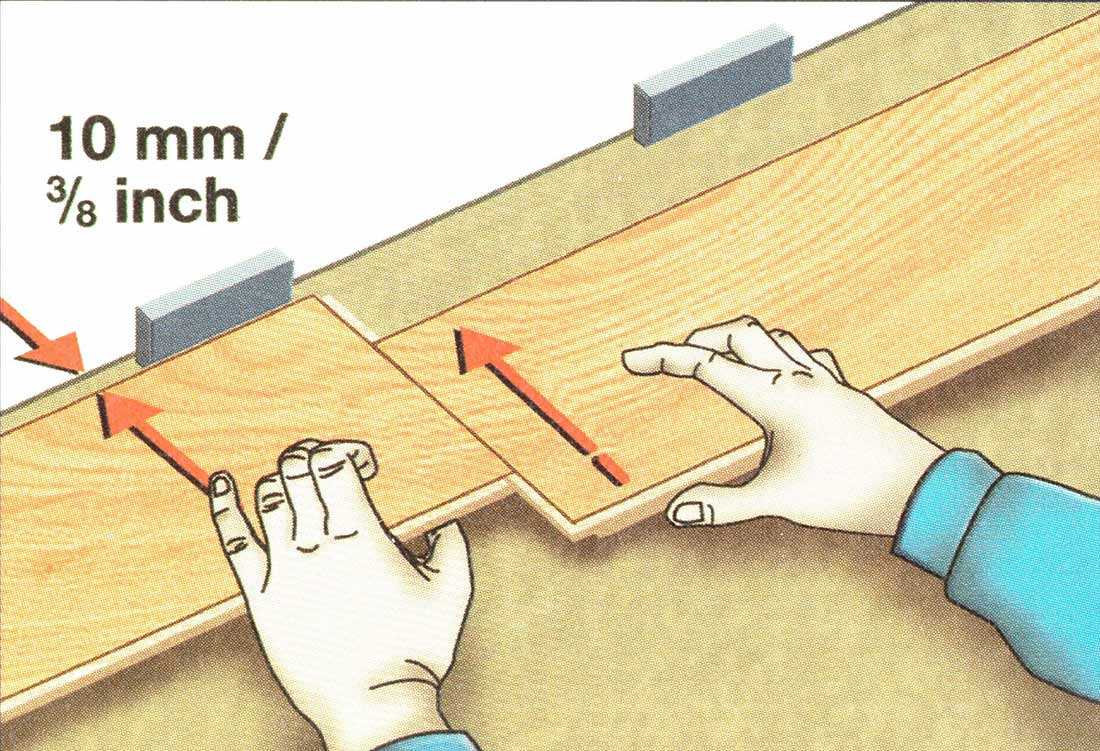 - С учетом температурного расширения ламелей, необходимо оставлять компенсационный зазор, порядка 1 см, между каждой стеной и ламинатом.