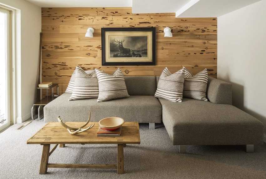Темную гостиную можно легко «осветлить», облицевав главную стену ламинатом светлых тонов. Также допустимо отделать часть стены или даже угол, если это подчеркнет стилистику интерьера. Теплые оттенки будут идеальны для помещений выходящих окнами на северную сторону. Это не только сделает комнату более светлой, но и придаст ощущение тепла.