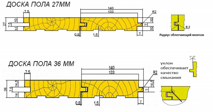 Половая шпунтованная доска должна иметь паз и шип, находящиеся на противоположных торцевых краях. Они располагаются примерно посередине боковой стороны, на одинаковом расстоянии от верхней и нижней плоскости лоски. На чертеже хорошо видно их необходимое положение.