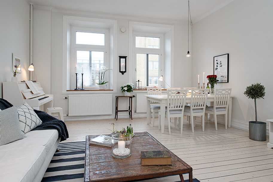 - дерево чувствительно к излишней влажности, к перепадам влажности и температур, к вредителям. Если гостиная включает в себя еще и столовую зону с обеденным столом, то дерево лучше скомбинировать с другим материалом;