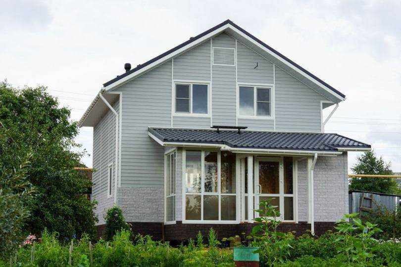 Можно также обшить постройку сайдингом под брус, который имитирует корабельную доску. Он считается универсальным и отлично подходит как для больших, так и маленьких домов. В зависимости от личных предпочтений и особенностей ландшафтного дизайна можно выбрать светлые и тёмные оттенки панелей. Данным сайдингом лучше всего одновременно оформить жилое строение и все прилежащие к нему пристройки, включая садовые беседки. Таким образом создастся общий образ участка.