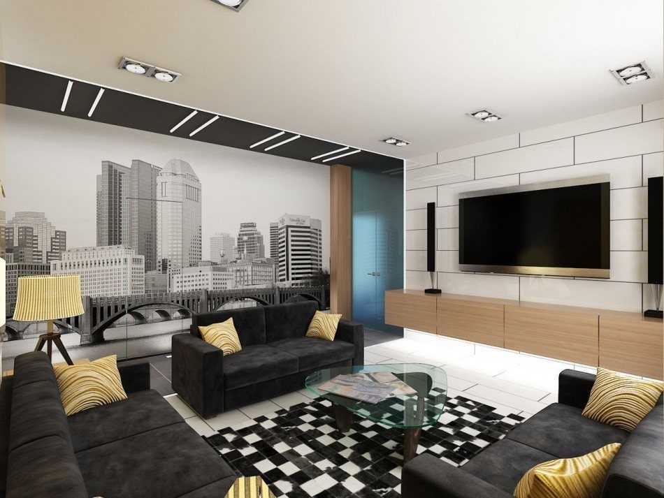 Среди трендов в современной отделке стен фигурируют геометрические принты, 3D-обои, растительные мотивы, напоминающие листы из гербария, мягкие градиенты, а также многочисленные спокойные, ненавязчивые расцветки. Если вы собираетесь поменять в зале не всю обстановку, отталкивайтесь от той отделки и мебели, которую вы менять не будете. Обои с вензелями в интерьере гостиной смотрятся неуместно вместе с советской мебелью и большими стенками в стиле 80-х, 90-х и нулевых.
