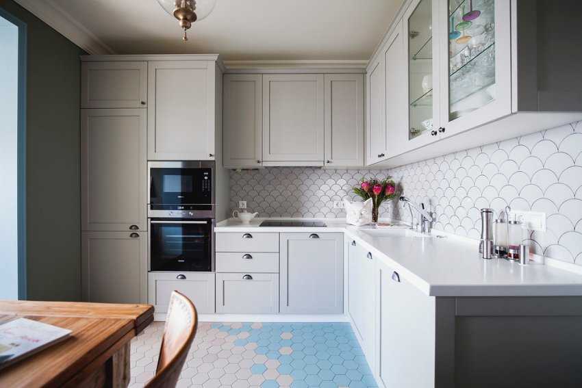 Оформление пола должно гармонировать с другими предметами интерьера: фартуком, мебелью, аксессуарами.