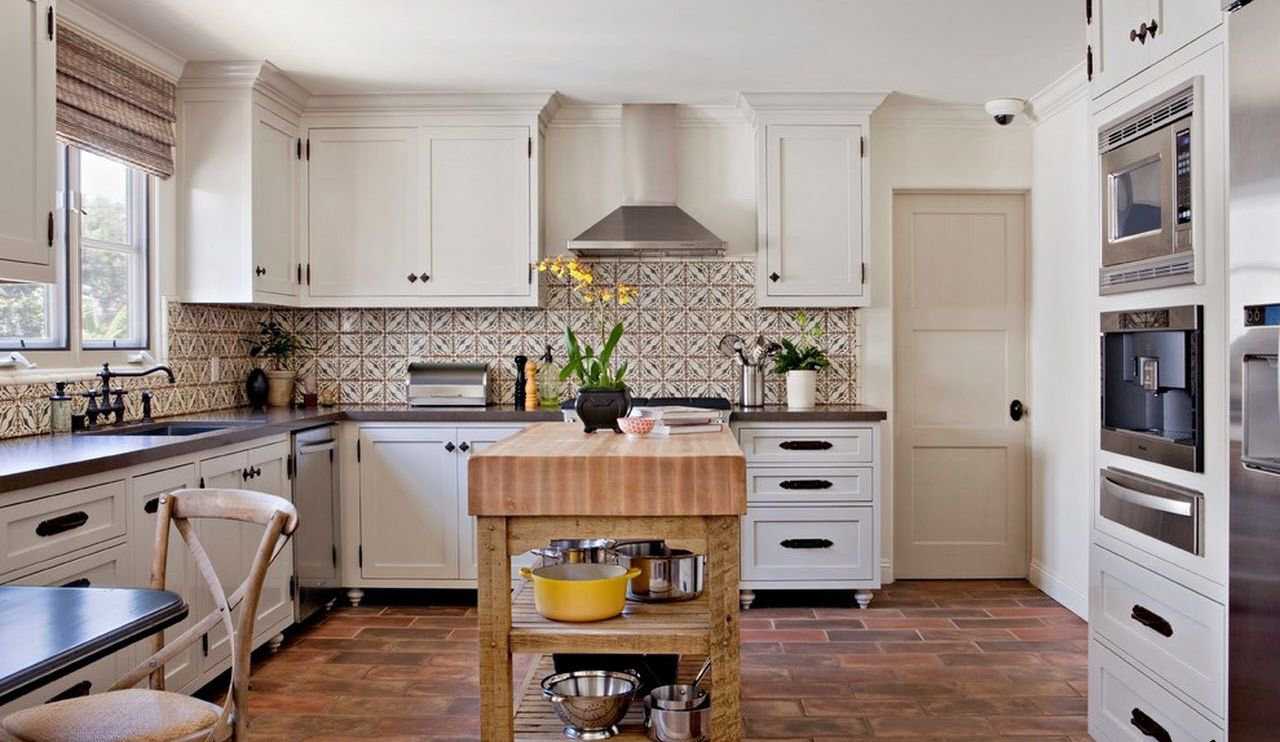 Для частного дома характерно большое кухонное пространство, которое позволяет использовать различные варианты укладки в сочетании с плиткой крупных и средних размеров.