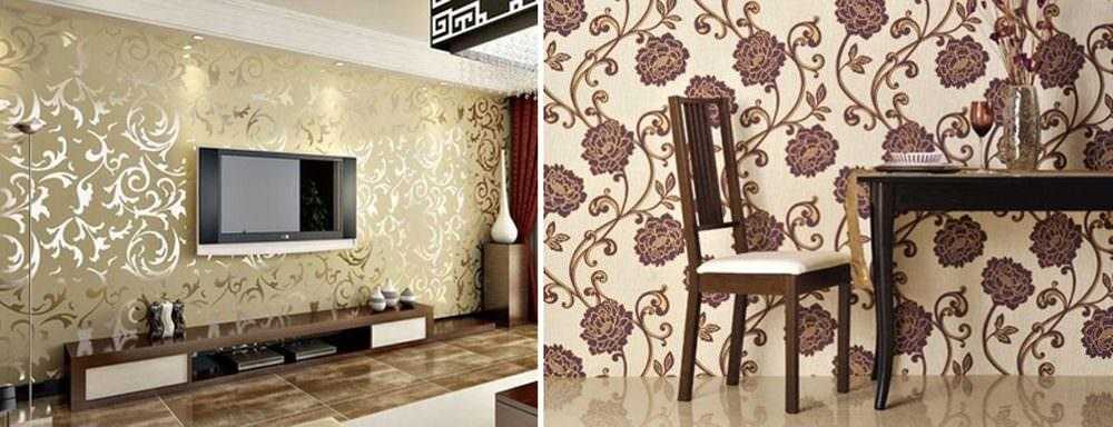 - Виниловые обои подойдут для любителей покрытий с рельефной поверхностью. Многие виниловые изделия создаются с использованием метода шелкографии. Стильные расцветки подобных вариантов подчеркнут достоинства любого интерьера.