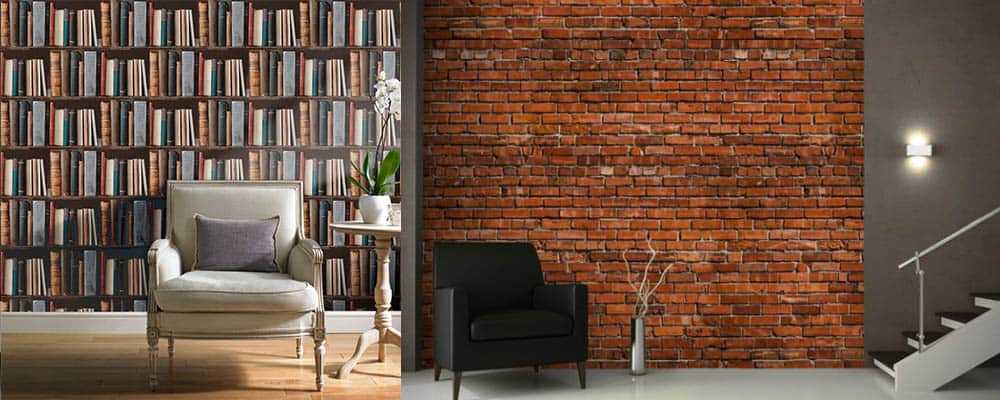 Дизайн обоев 2021 года с реалистичной симуляцией кирпичной кладки, трещин, бамбука, дерева или даже библиотеки полностью трансформирует пространство.