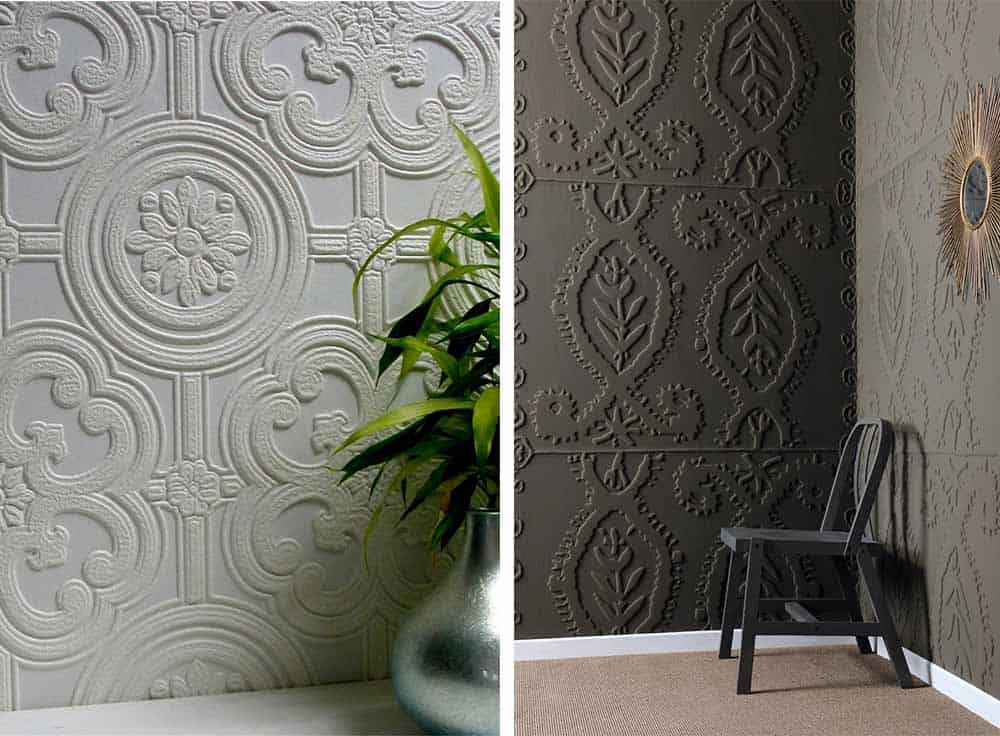 Хорошая альтернатива лепнине – обои с тиснеными узорами.