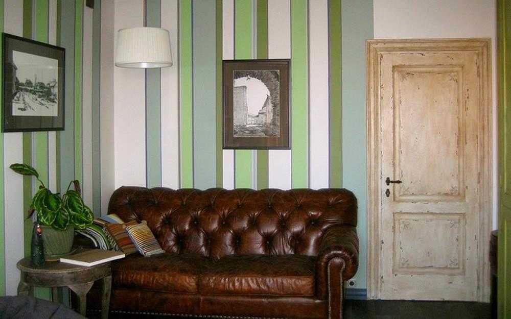 Вертикальная полоса остается актуальной, особенно для помещений с низким потолком. Чаще используют узор с чередованием линий разной толщины или цвета. Это решение позволяет избежать однообразия.