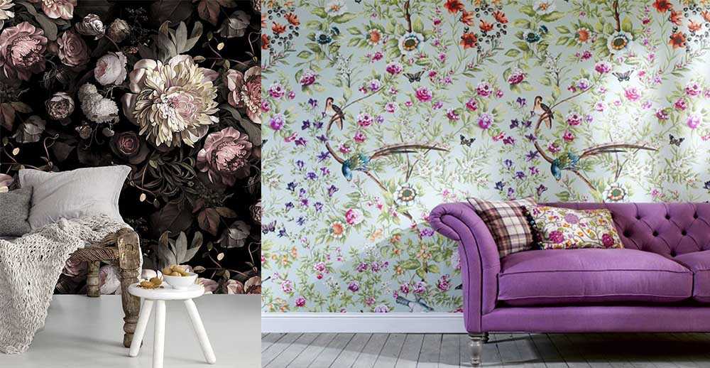 И в третью входят самые актуальные и модные обои: узоры с крупными объемными цветами в стиле классических полотен.