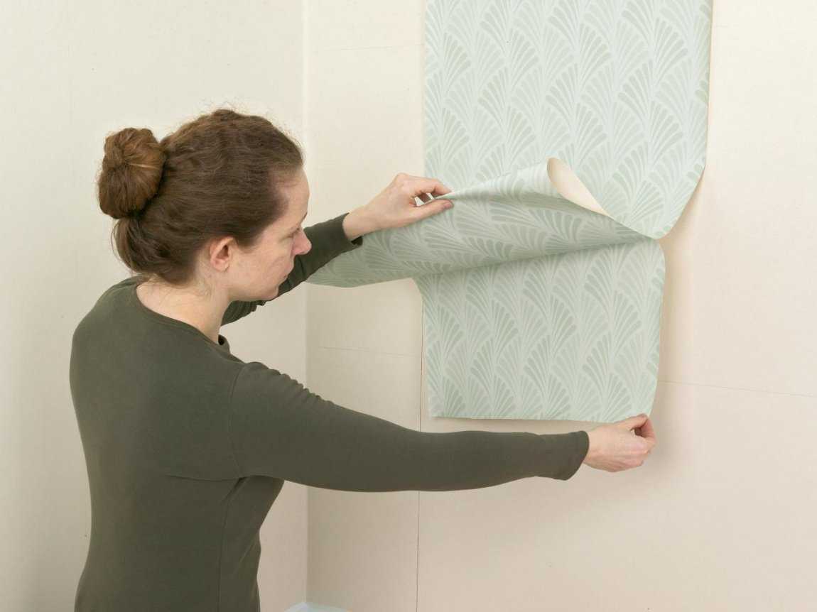 Обои из бумаги практически невозможно поклеить одному. Клей нужно нанести на полотно, затем поднять лист к потолку и тщательно прогладить по всей длине и ширине. Необходимо следить, чтобы он не сворачивался и не приклеивался ко всему подряд. При этом на флизелиновые изделия наносить клей не нужно.