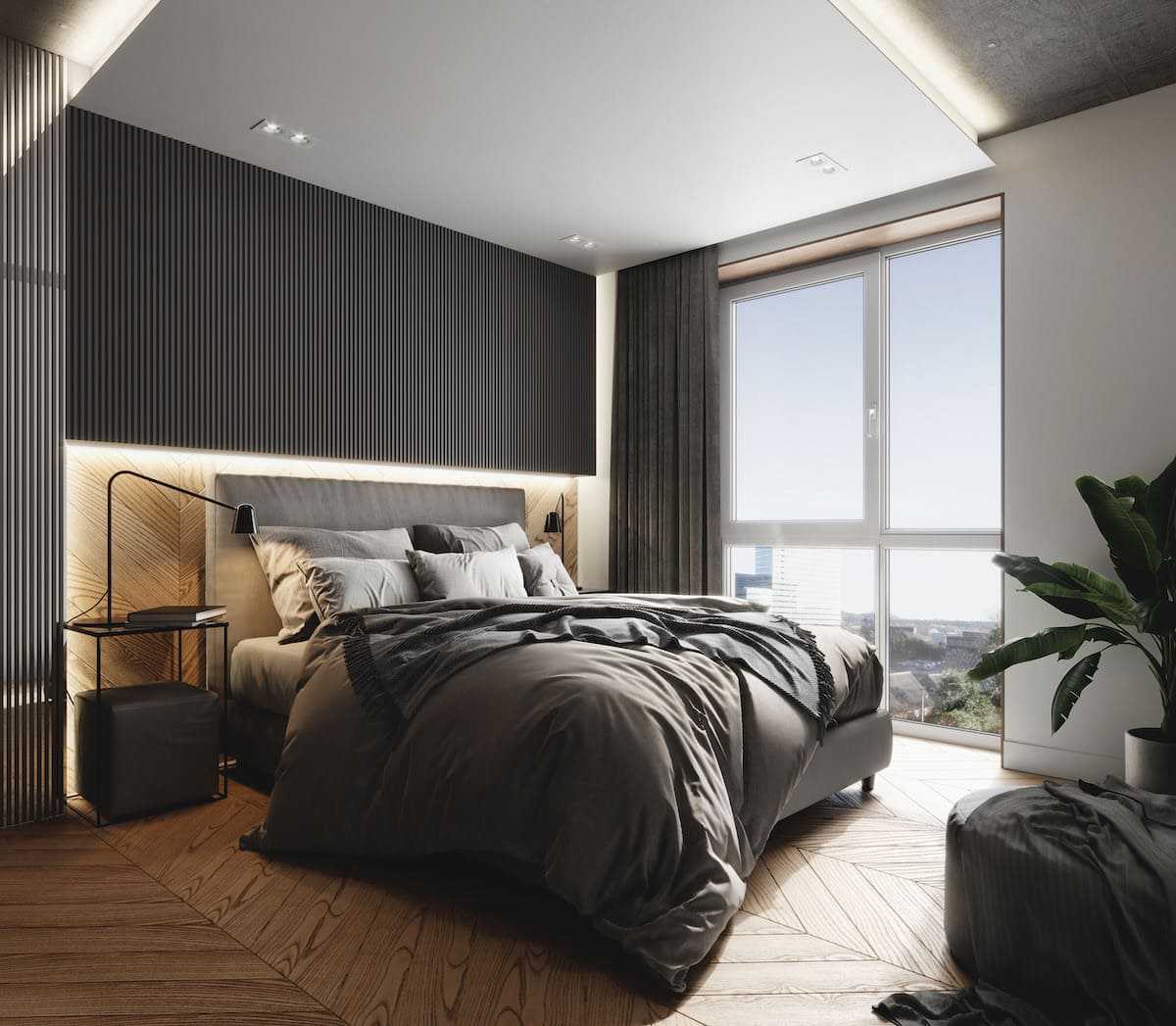 В спальне все должно работать на то, чтобы ее обитатели могли расслабиться и отдохнуть. Матовые покрытия не такие резкие и куда меньше раздражают нервную систему, чем постоянные блики и отражения.