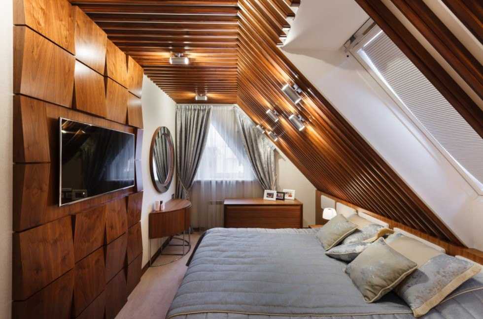 Окна. Такой вариант отделки характерен для мансардных потолков. Он неизменно пользуется популярностью при создании интерьера загородных домов. Окна чаще располагают на скатах. При желании их дополняют полупрозрачными воздушными занавесями или делают проемы в форме люка, иллюминатора.