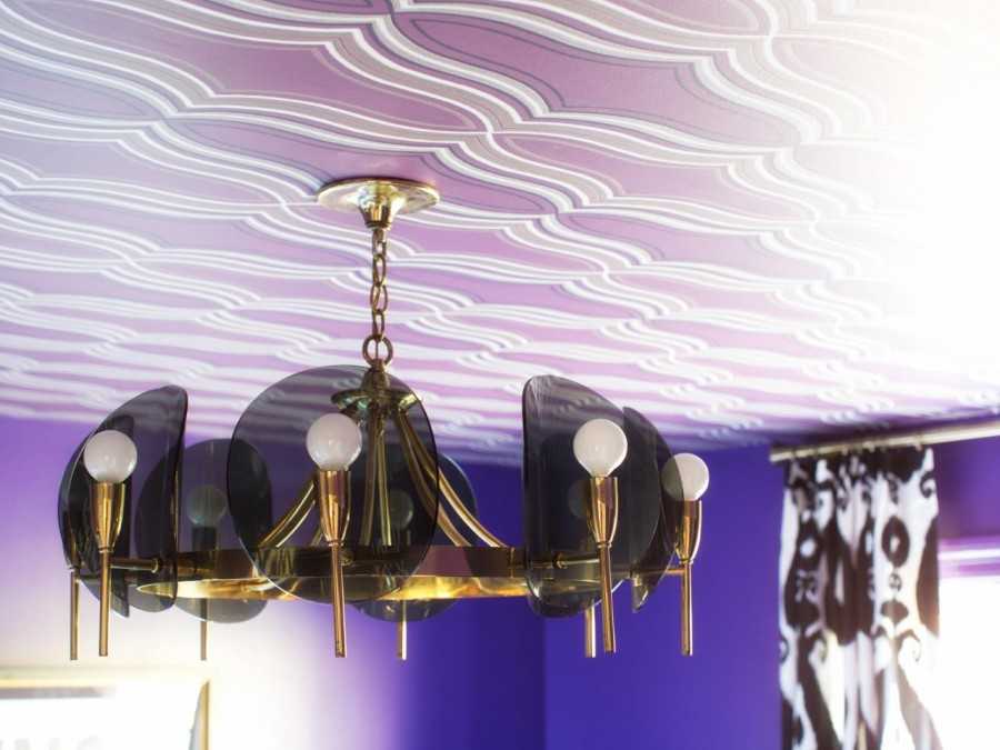 Покрытия с глянцевым и металлическим блеском будут хорошо отражать свет и помогут немного приподнять потолок визуально.