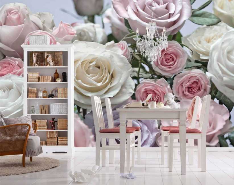 Цветы на обоях могут быть такими разными. Правильный подбор размера рисунка – один из важных моментов. Для просторного помещения выбор размера изображения ничем не ограничен. Но эффектнее всего здесь будут выглядеть крупные принты.