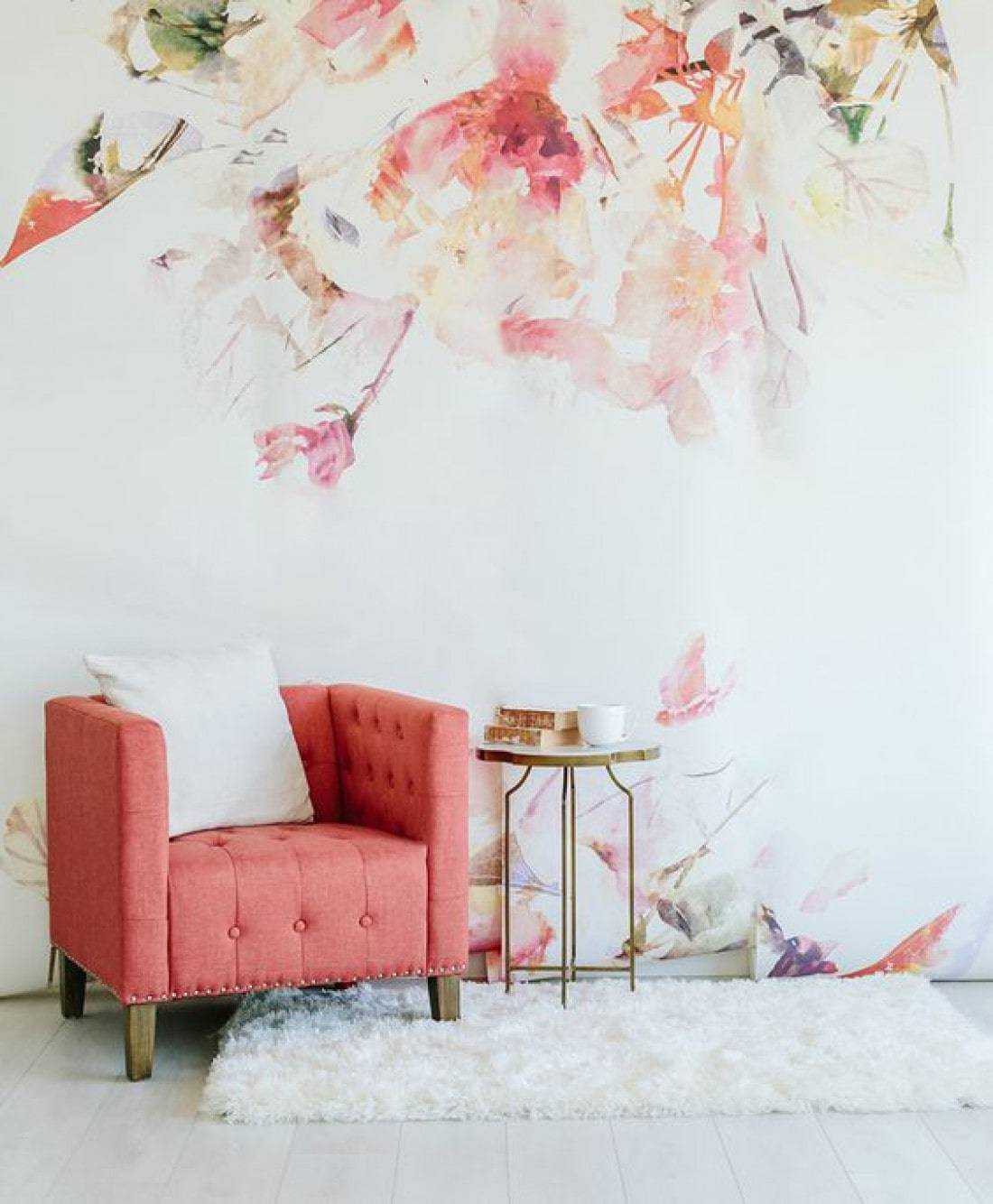 Эффект акварель завораживает и привлекает взгляды. Оформив одну из стен этими яркими нарисованными цветами, такая композиция определенно не останется незамеченной.