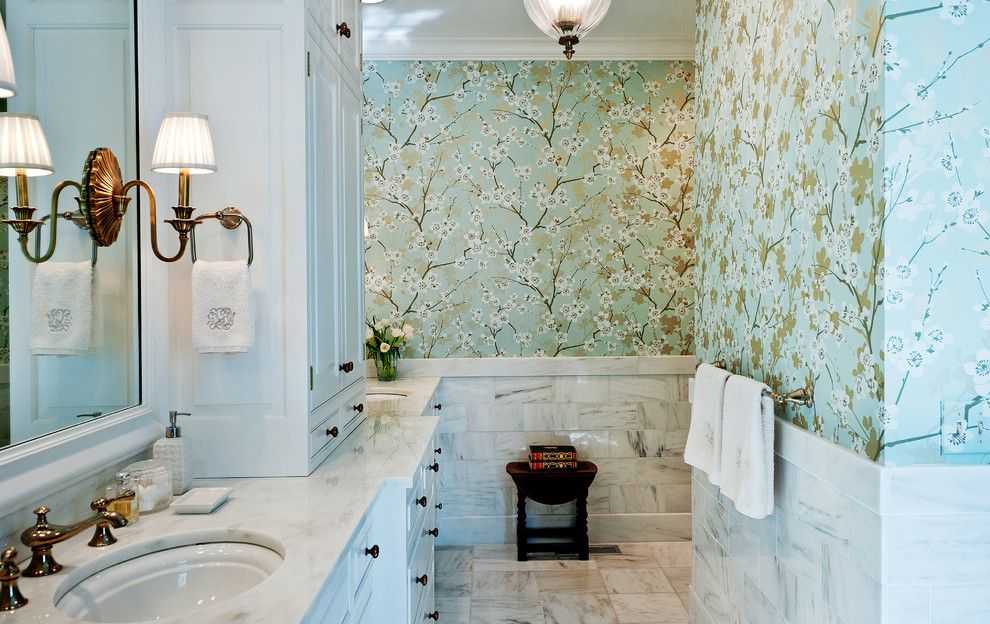 Сочетание обоев с другими видами отделки стен также поможет защитить обои от непосредственного контакта с водой