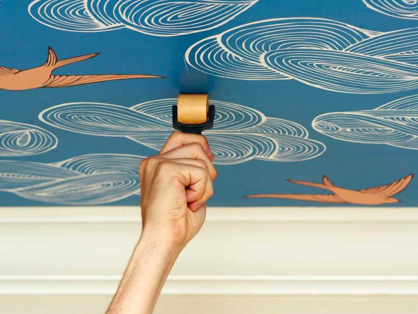 Первый способ считает более простым, но он действенный в том случае, когда обои без рисунка. Именно такие полотна чаще всего используют для покрытия потолков.