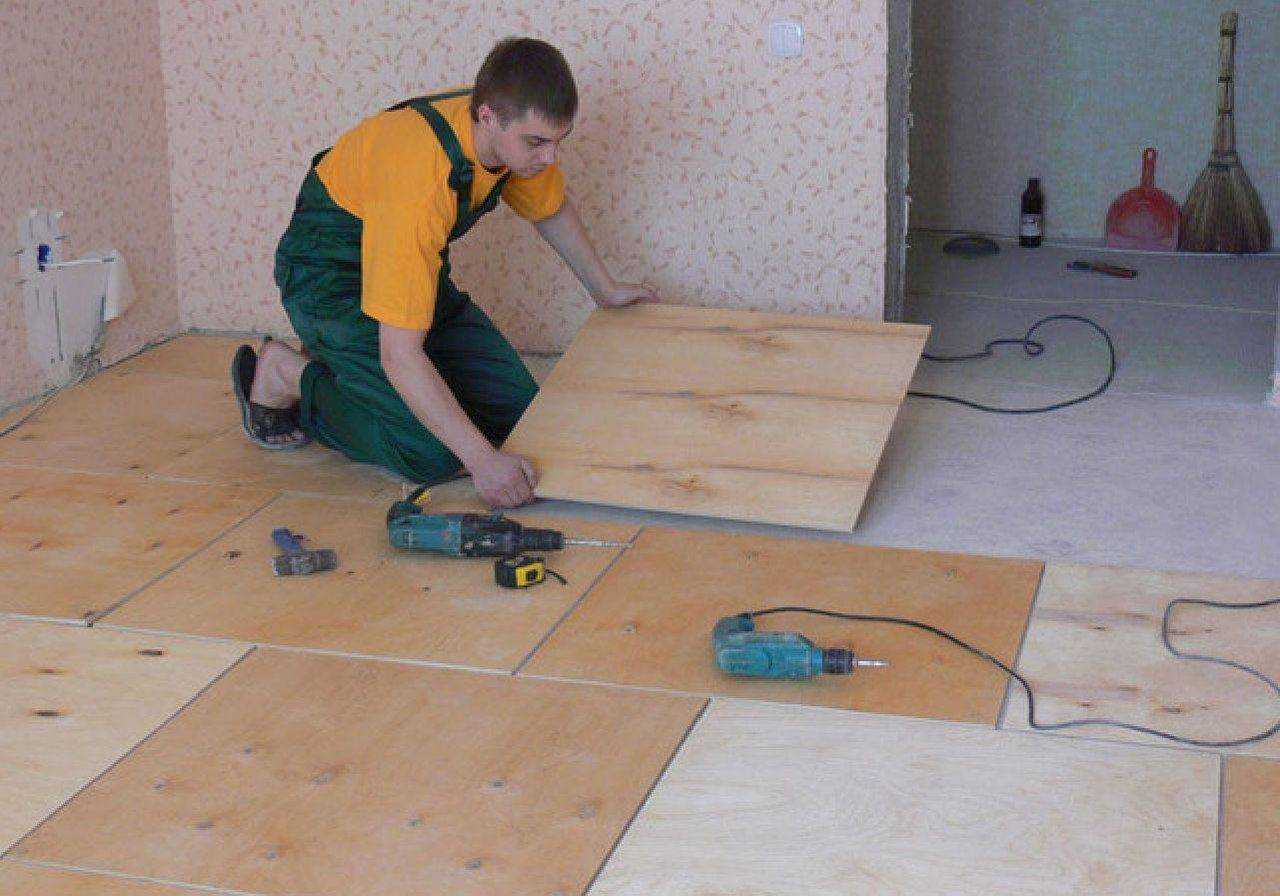 Способ подходит для помещений с деревянными полами, поверхность которых не имеет возможности качественно сцепляться с керамической, виниловой плиткой. Перед началом монтажа плавающего пола необходимо обязательно отремонтировать всю дощатую основу, заменить прохудившиеся лаги, зашлифовать верхний слой. Обустройство стяжки на деревянной основе проходит в несколько этапов:
