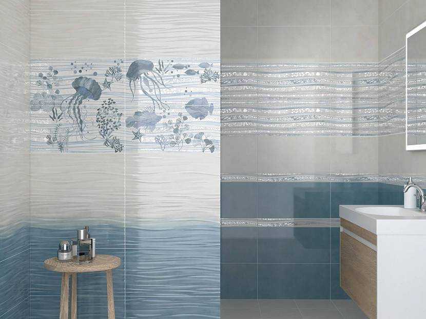 Невозможно найти оттенка, который не был бы использован дизайнерами компании. Они применяются как монохромные варианты или в тандеме с другими цветовыми исполнениями. Для воплощения морской тематики коллекции представлены бежевой, голубой, белой или бирюзовой плиткой.