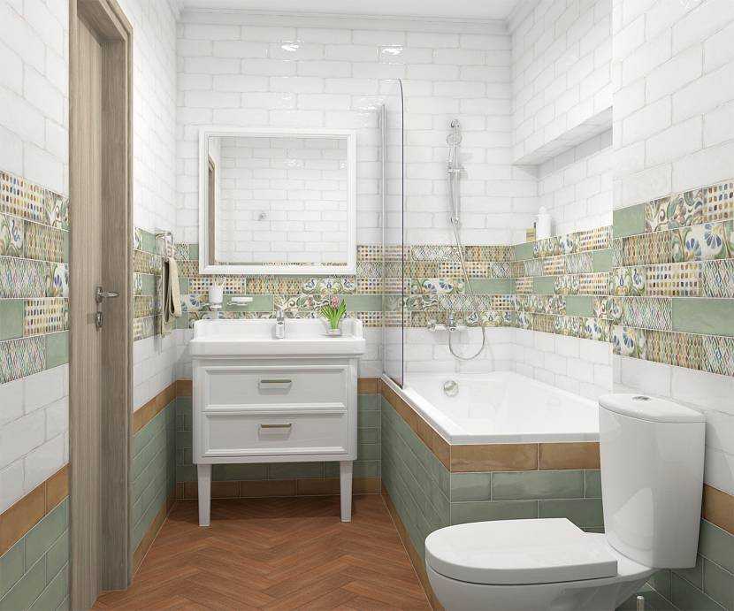 - Для небольшого помещения стоит использовать плитку небольшого размера или светлую мозаику с мелким принтом. Такой вариант позволит сделать помещение визуально шире и просторнее.