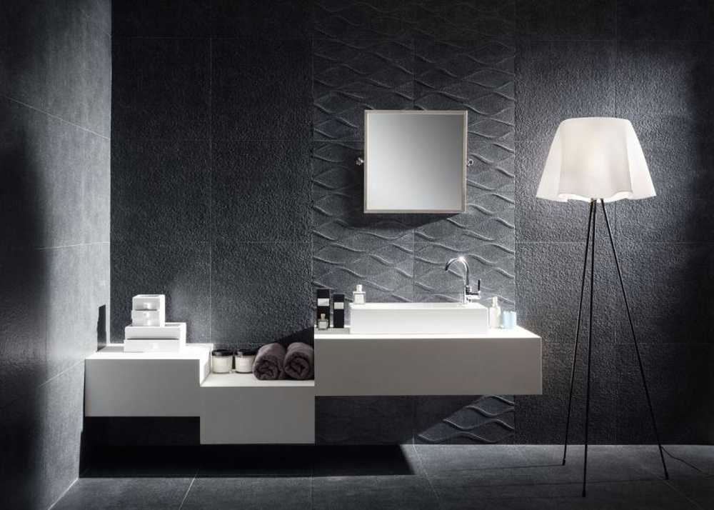 Обустройство ванной комнаты с черным полом, фото Tubądzin
