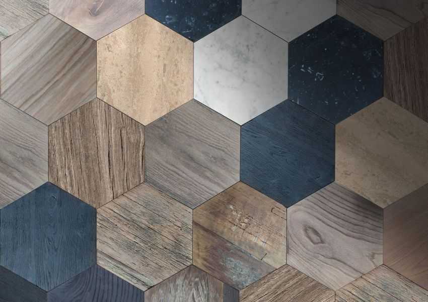 В названии сразу отражено, что для создания такого узора потребуется плитка с рисунком, имитирующим 4 различные древесные породы. Кроме того, они должны отличаться по размеру и оттенку.