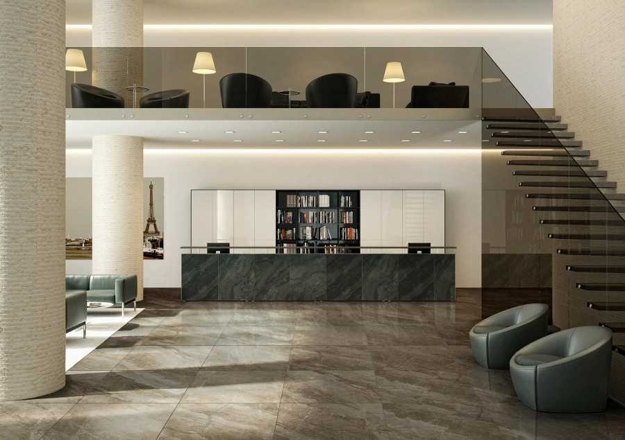 Если помещение имеет высокую проходимость, то здесь стоит остановить выбор на керамогранитной плитке Tecnica. Для жилых помещений больше подойдет Interni.