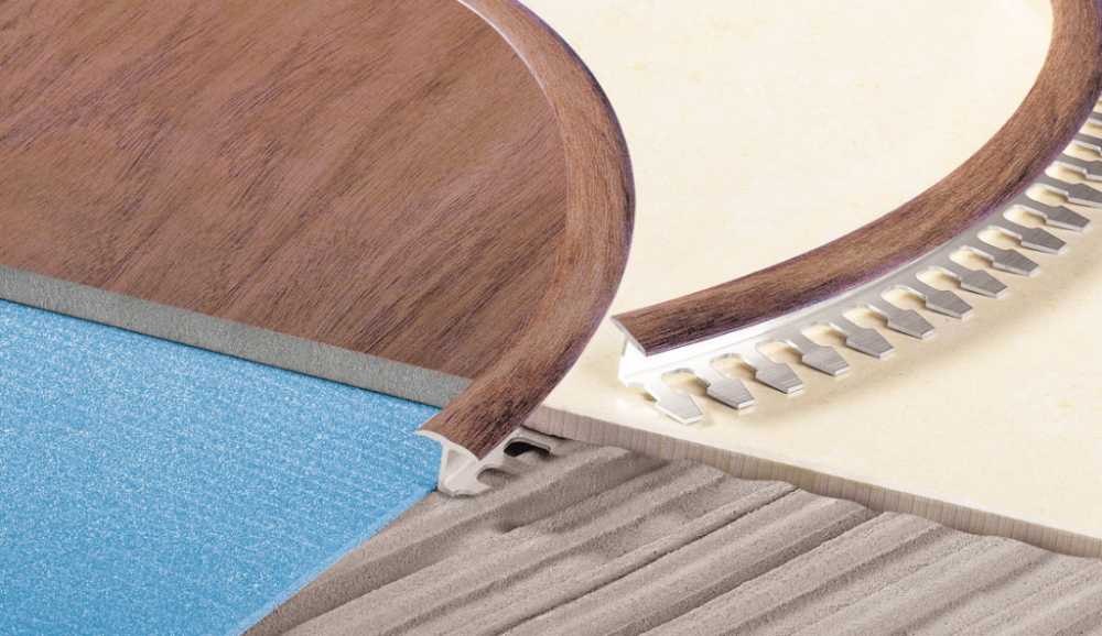 - С применением гибкого ПВХ-профиля оформляются стыки с любыми криволинейностями.Состав профиля: основа — крепежная часть и декоративная накладка. Сначала ставится крепежная часть профиля, на него укрепляется декоративная часть.Гибкий стыковочный профиль для ламината и плитки способен соединять две поверхности в одинаковых уровнях и закроет линию состыковки покрытий в разных уровнях. С помощью ПВХ-профиля возможно скрыть приличную разницу уровней двух покрытий.