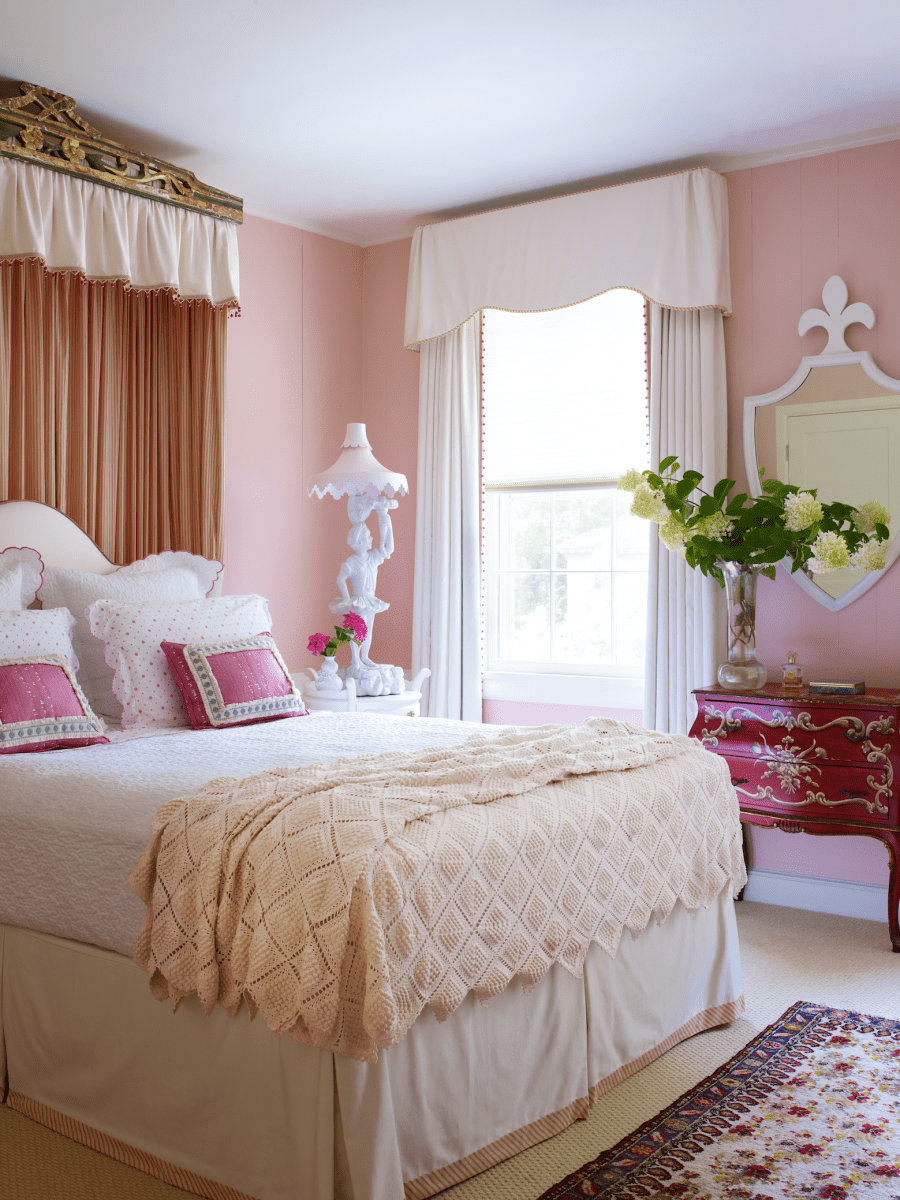 Традиционно этот цвет воспринимается как девчачий – розовый бант на конверте с новорожденной, такие же одежки и игрушки. Поэтому мужчины относятся к нему очень настороженно, если это касается их сферы обитания. Они ещё могут согласиться на нежные тона в гостиной или на кухне, но супружеская спальня в розовых тонах…